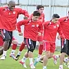 Nuri Asan Tesisleri’nde yapılan idman önce düz koşu ile başladı, ardından iki gruba ayrılan futbolcular, taktik ağırlıklı çalışmaya geçti. İdmanın son bölümünde ise çift kale maç oynandı. Teknik direktör Erhan Altın defans, orta saha ve forvet oyuncularını ayrı çalışma uyguladı. Bu arada defansın kilit isimleri Kaptan Turgay Gölbaşı, Kere, Lokman ve Ozan idman sırasında pozisyonları değerlendirerek, hata yapmamaları konusunda birbirlerini uyardı. Manisaspor maçında sakatlanan Şenol Demirci ve tedavileri süren Musa Sina ile N'Sumbu takımdan ayrı düz koşu yaptı.