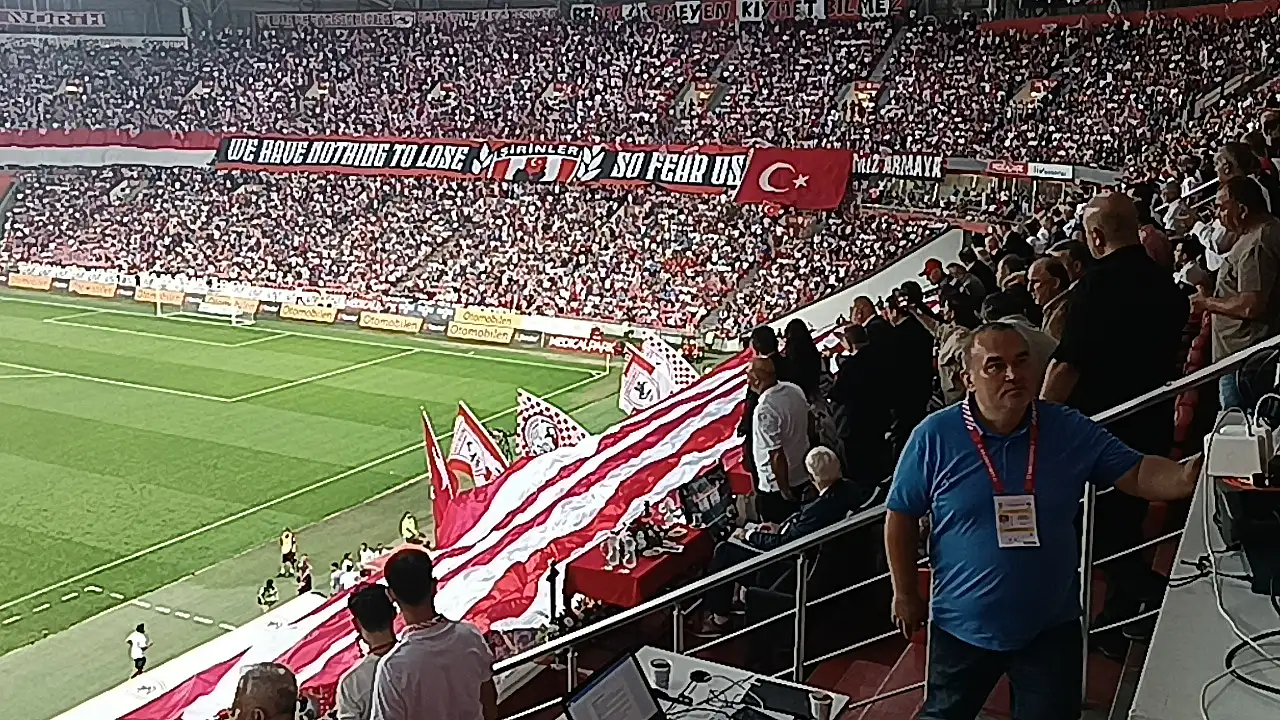 UEFA Avrupa Ligi Play-Off Turu'nda Panathinaikos ile karşılaşan Samsunspor'un taraftarları, maça özel hazırladıkları sürprizi müsabaka başlarken gerçekleştirdi.