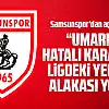 Adil, eşit ve temiz futbol çağrımızla birlikte; mücadelede asla geri adım atmayan, Atatürklü Arma için yüreklerini ortaya koyan futbolcularımıza ve teknik ekibimize, ayrıca bizleri her şartta yalnız bırakmayan Büyük Samsunspor taraftarına sonsuz teşekkür ederiz.”