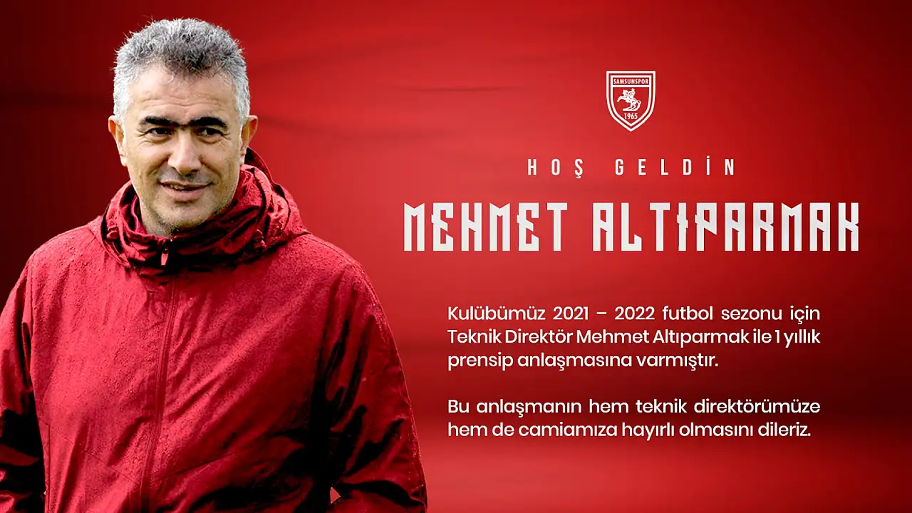 2020-2021 sezonunu 70 puanla averajla üçüncü sırada bitiren ve Play-Off’larda Altınordu takımına yenilerek Süper Lig hayalini gerçekleştiremeyen Samsunspor’da teknik direktör Ertuğrul Sağlam ile yollarını ayırmıştı. Kulüpten yapılan açıklamada, “Kulübümüz 2021 – 2022 futbol sezonu için Teknik Direktör Mehmet Altıparmak ile 1 yıllık prensip anlaşması sağlanmıştır. Bu anlaşmanın hem teknik direktörümüze hem de camiamıza hayırlı olmasını dileriz” denildi.