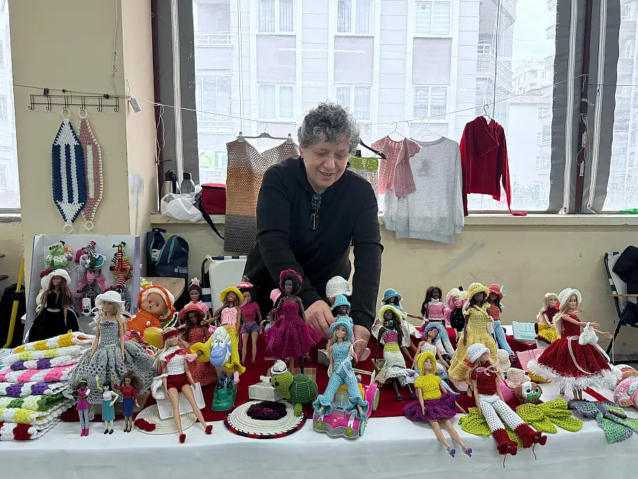 Samsun'da yaşayan 60 yaşındaki emekli ev hanımı Şaziye Kardaş, 7 yıldır ünlü sanatçıların giyim tarzlarından ilham alarak oyuncak bebekler için kıyafet tasarlıyor.