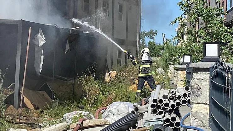 Kocaeli'nin Kartepe ilçesinde inşaat şantiyesinde çıkan yangında depo ve iki katlı prefabrik bina zarar gördü.