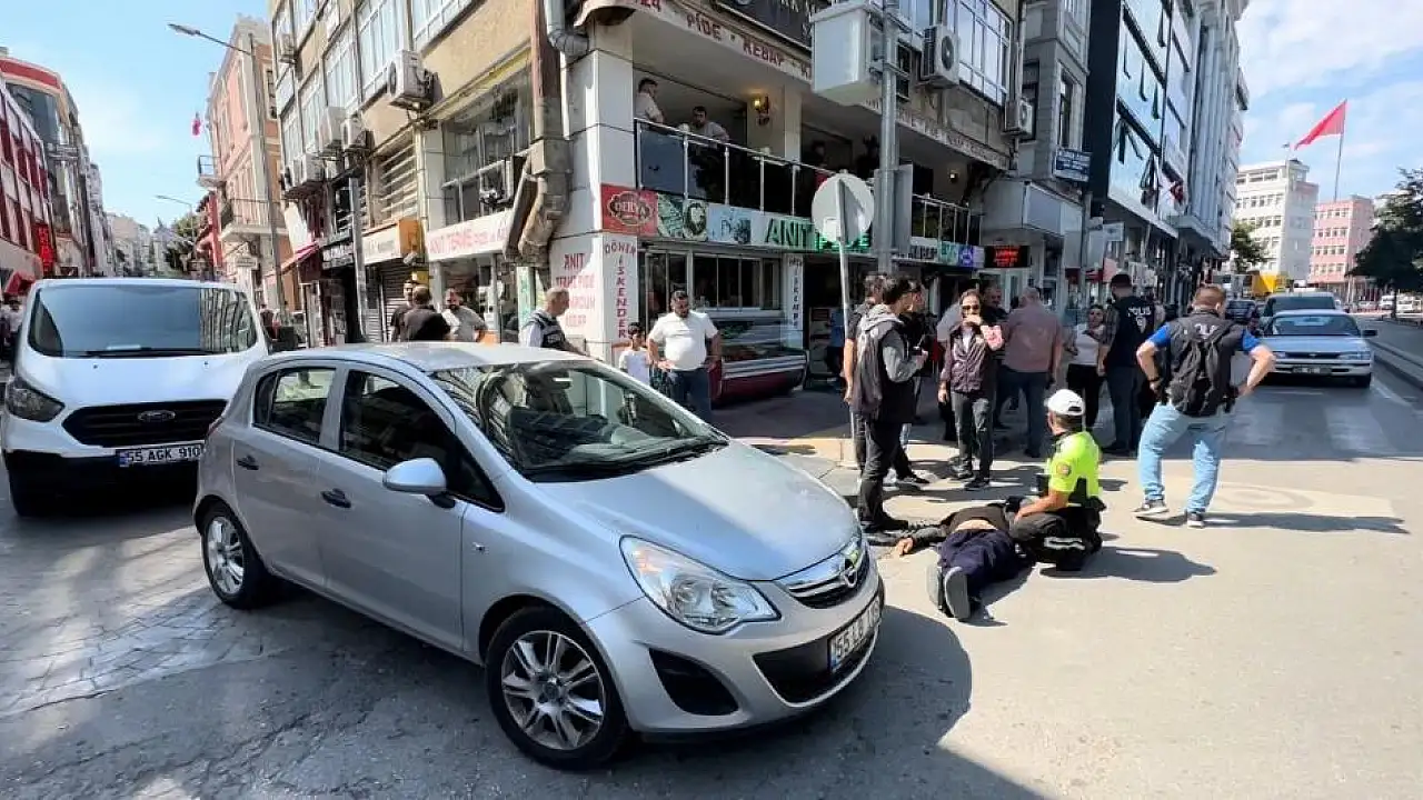Olay, İlkadım ilçesi Kale Mahallesi Osmaniye Caddesi ile Cumhuriyet Caddesi'nin kesiştiği noktada meydana geldi. İddiaya göre, 55 LB 139 plakalı otomobili kullanan Funda K. (49), Cumhuriyet Caddesi'ne dönüş yapacağı sırada önünden geçen ve alkollü olduğu belirlenen Faruk D. (45) bir anda kendini yere attı. Başını yere çarpan şahıs, olay yerine gelen sağlık ekipleri tarafından Gazi Devlet Hastanesine kaldırıldı.