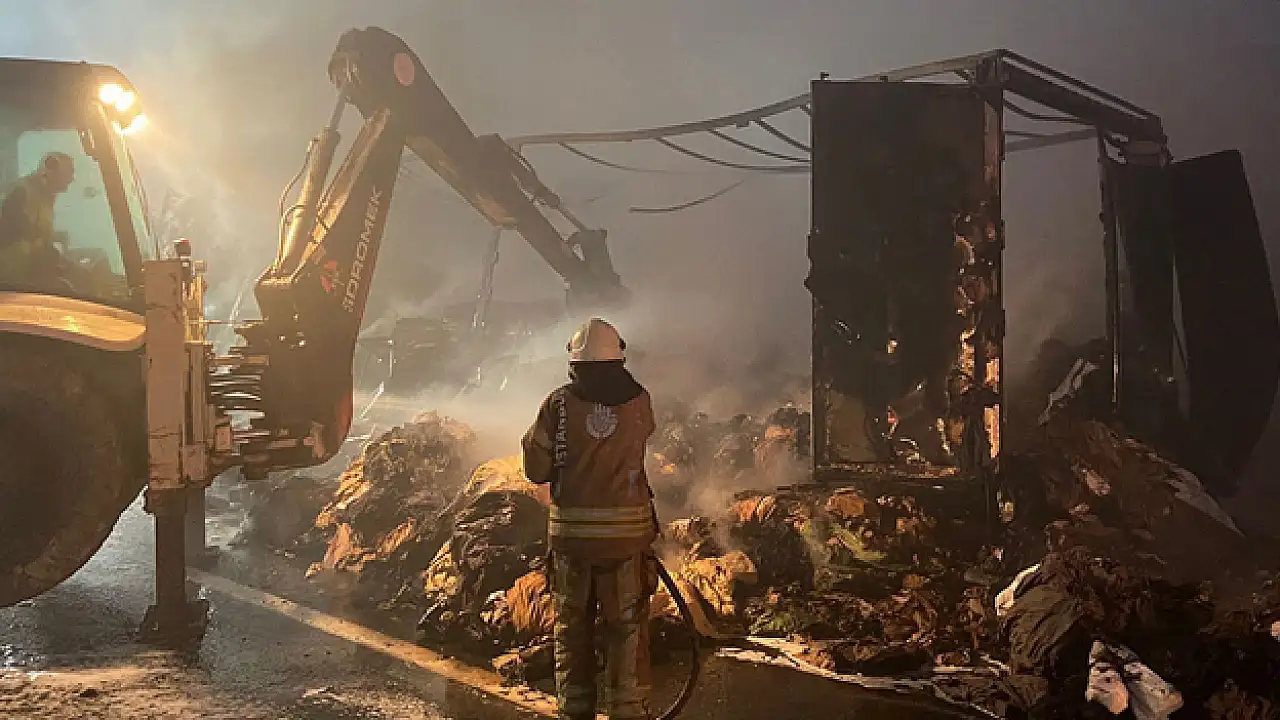 Yangında tır şoförü yara almadan kurtulurken tır ve içindeki kumaşlar kullanılamaz hale geldi. İHA