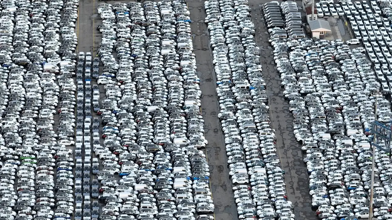 İstanbul Haydarpaşa Limanı'na gemilerle getirilen binlerce ithal sıfır aracın havadan çekilen görüntüleri ilginç manzaralar oluşturdu