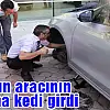 SAVCININ ARACININ MOTORUNA GİREN YAVRU KEDİ ŞOFÖRLERE ZOR ANLAR YAŞATTI