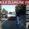 Zaman zaman yol çalışması için konular hunilerle slalom da yapan gençler, yaygın trafikte 3 kişi kullandıkları scooter ile hem kendi hem diğer sürücülerin canını tehlikeye attı hem de kazaya davetiye çıkardı.