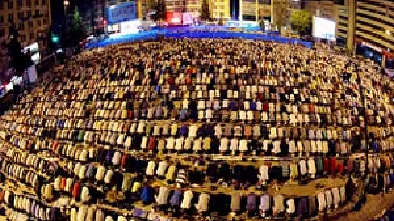 Samsun'un İlkadım Belediyesi tarafından Kadir gecesi nedeniyle dün akşam düzenlenen 'Seccadenle Gel' etkinliğinde binlerce kişi hep birlikte Cumhuriyet Meydanı'nda teravih namazı kılıp dua ettiler