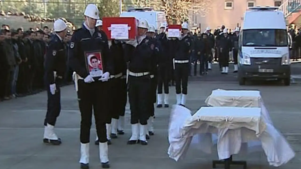 Diyarbakır'ın Çınar İlçesi'nde teröristlerin hain saldırısı sonucu şehit olan polis memuru Mehmet Şenol Çiftçi ve şehidin 4 yaşındaki kızı Mevlüde İrem Çiftçi için tören düzenlendi