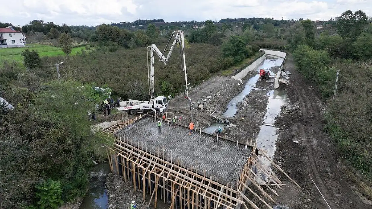 Samsun'da sel felaketinin ardından yıkılan Bazlamaç Mahallesi Karagöl mevkisindeki köprünün yapımında sona yaklaşılıyor.