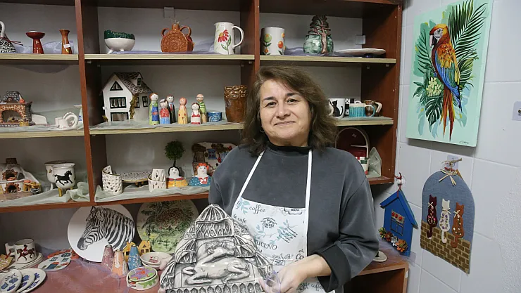 Nesrin Yaramış, 2000 yılından bu yana el sanatlarıyla uğraştığını söyledi.Önce 13 yıl keçe sanatı ile uğraştığını belirten Yaramış, "Yün keçe ile birçok süs eşyası, dekoratif ürünler yaptım. Daha sonra keçe işini yapmaktan vazgeçtim. Seramik ile tanıştım. 2 yıldır bunun üzerine eğitim aldım. Seramikte çok geniş bir alan var. Dekoratif süs eşyaları, bardaklar, kuklalar, her şey yapılabiliyor. Duvar süsleri seramikten yapılıyor. Seramik, fabrikasyon şeklinde yapılan bir şey. El sanatlarıyla da yapılıyor." dedi.