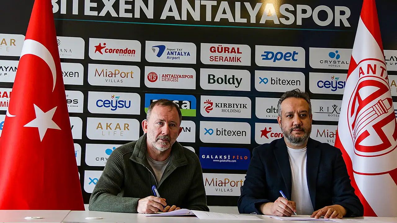 Antalyaspor, yeni Teknik Direktör Sergen Yalçın için Döşemealtı ilçesindeki Atilla Vehbi Konuk Tesisleri’nde imza töreni yaptı. Törende Antalyaspor Başkanı Sinan Boztepe ve yönetim kurulu üyeleri de hazır bulundu. Sergen Yalçın’ın dünyada en değerli hocalar arasında yer aldığını ifade eden Antalyaspor Başkanı Sinan Boztepe, “Bana göre bu sene ligin şampiyonu 3’üncu olan takım olacak. İnşallah biz de Sergen hocamızla başarı hedeflerimize doğru emek harcayacağız. Bu sezon sonuna kadar hocamızla beraberiz, sezon sonundaki gelişmelere göre de süreci takip edeceğiz. Başarı için her zaman hedeflerimiz ileridedir. Transfer çalışmaları için hocamıza zaman tanımamız gerekir. Başarı için çalışmalarımızı sürdürüyoruz. Transfer çalışmaları yapıyorduk, yeni tercihler için hocamıza zaman tanımamız gerekir. Antalya başarı istiyor, Antalyaspor’un başarılı bir grafiği olması gerekir. Taraftarlarımız bundan sonra daha heyecanlı maçlar izleyecek" diye konuştu.