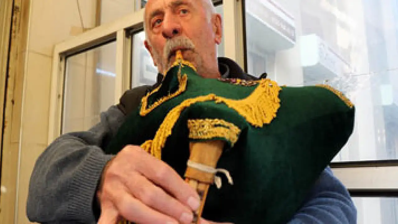 Çay ocağı işletmecisi 73 yaşındaki Hasan Özbek tulum çalmaya başlayınca, sesi duyan vatandaşlar çay ocağına hücum ediyorlar.
