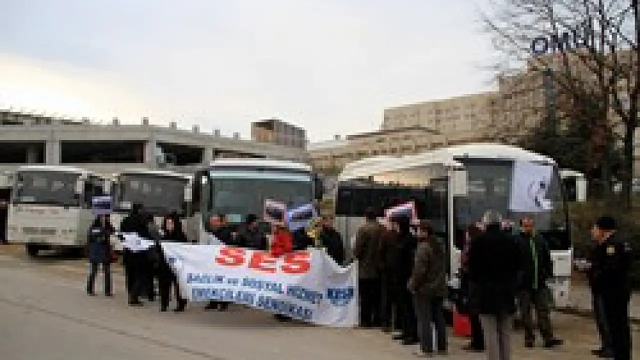 SES Samsun Şubesi, Ondokuz Mayıs Üniversitesi'nin (OMÜ) kadrolu personelini taşıyan servis araçlarının mesai bitiminden sonra kapılarını 15 dakika geç açtığı gerekçesiyle eylem düzenledi