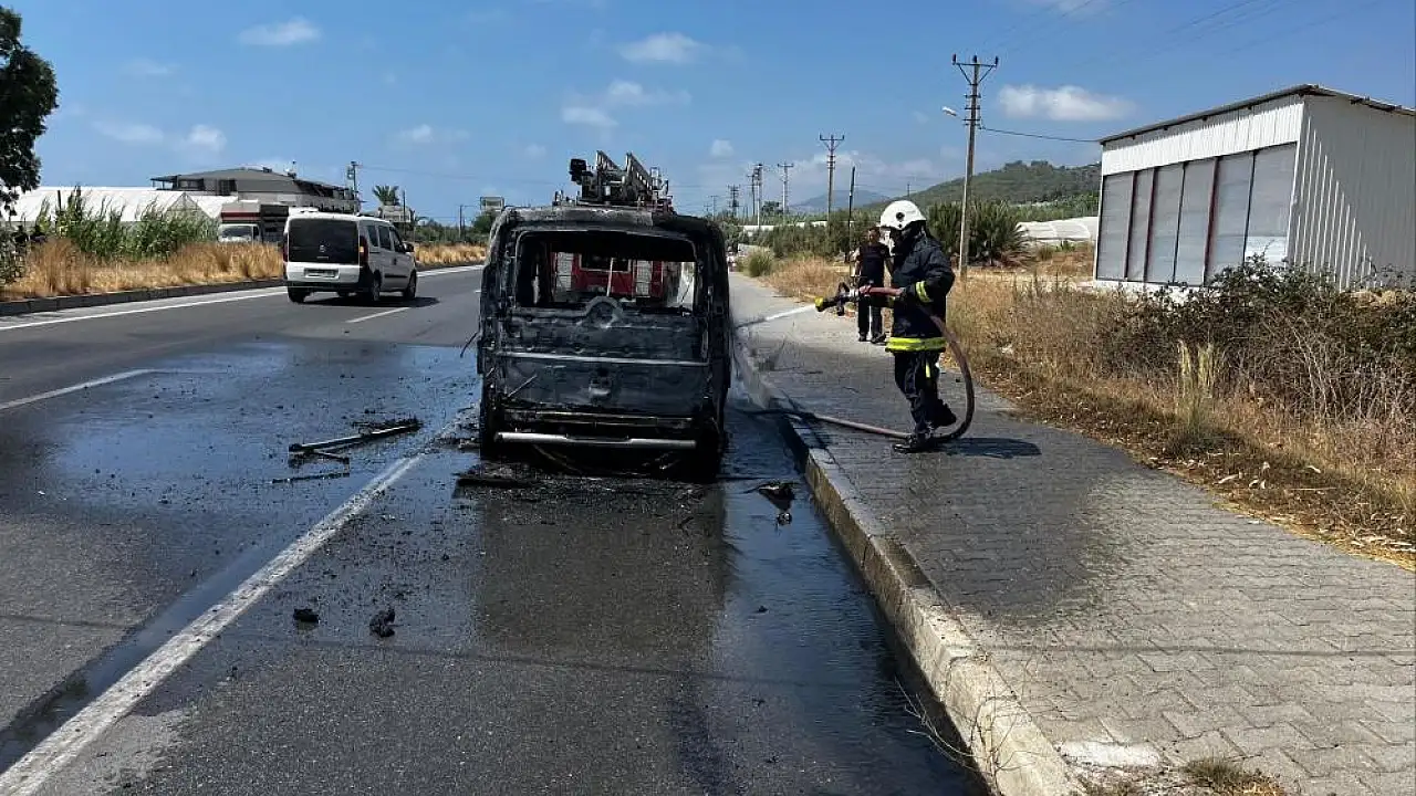 Antalya'da seyir halindeki hafif ticari aracın motor kısmından yangın çıktı