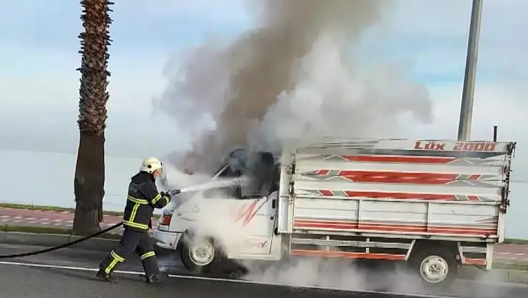 Olay, Ünye ilçesi Fevzi Çakmak Mahallesi sahil yolu üzerinde meydana geldi. Edinilen bilgiye göre, B.T.'nin (26) kullandığı 44 LH 638 plakalı kamyonet, henüz belirlenemeyen bir nedenle yanmaya başladı. Motor kısmından dumanların çıktığını fark eden sürücü kamyoneti yol kenarına çekerek, araçtan indi. Bu esnada alevler kısa sürede kamyonetin ön kısmını sardı.