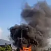 Yangının çıkış nedeni araştırılırken, alev alev yanan kamyonet kameraya saniye saniye yansıdı.