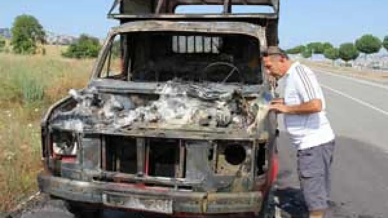 15 yıldır kullandığı kamyonetinin yanması üzerine büyük üzüntü yaşayan İhsan Demirel, aracının kaskosu olmadığı için hurdacıya satmak zorunda kalacağını söyledi.