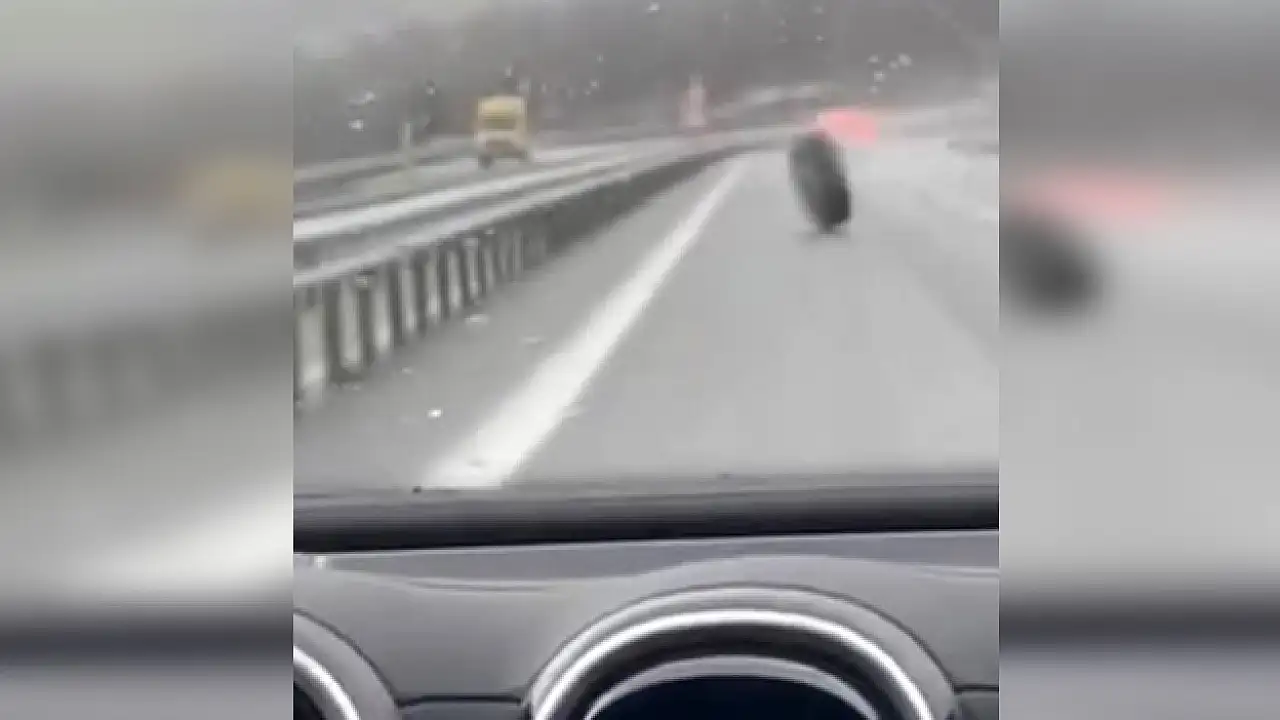 Olay, İstanbul Havalimanı yolu Tayakadın mevkisinde sabah saatlerinde gerçekleşti. Seyir halindeki bir hafriyat kamyonunun lastiği süratle ilerlerken yerinden fırlayarak yol üzerinde kontrolsüzce ilerlemeye başladı. Durumu fark eden diğer sürücüler araçlarını yavaşlatarak o anları cep telefonu kamerasıyla görüntülendi. Görüntülerde lastiğin yol boyunca ilerlediği ve bariyere çarptıktan sonra durduğu görüldü.