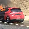 Seyir halindeki otomobil alev aldı