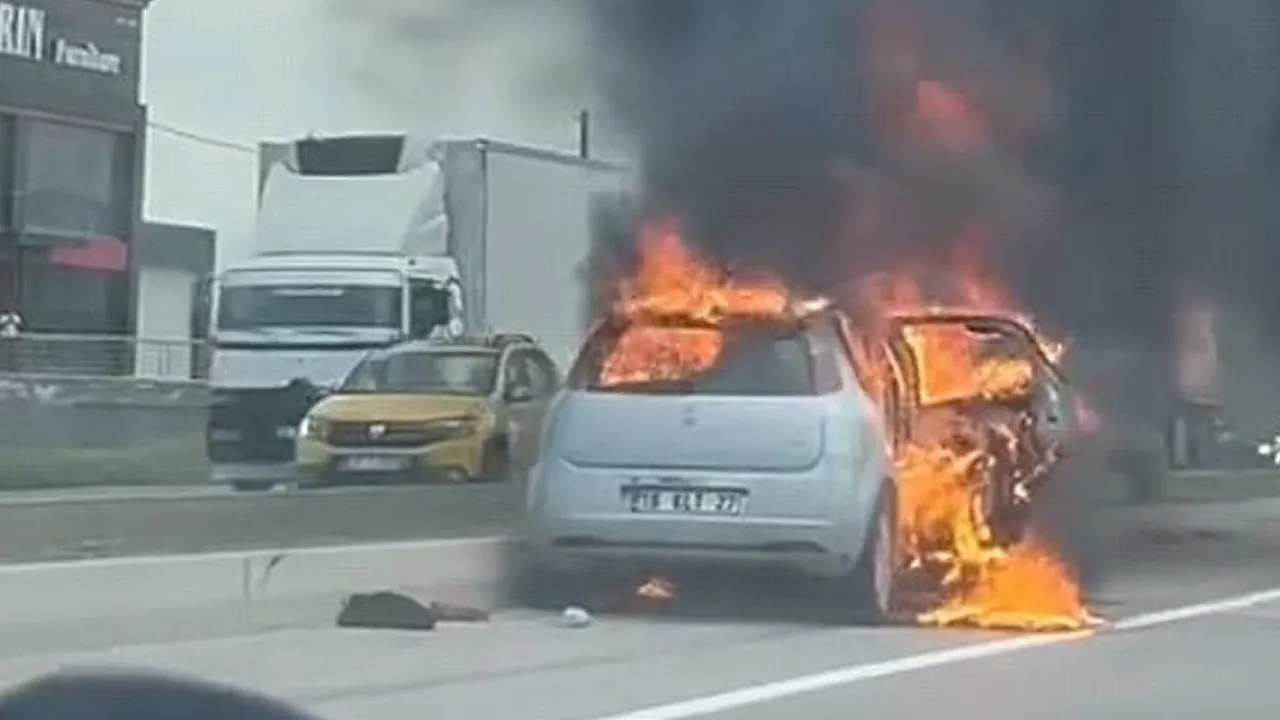 Bursa'da seyir halindeki otomobil alev alev yandı.