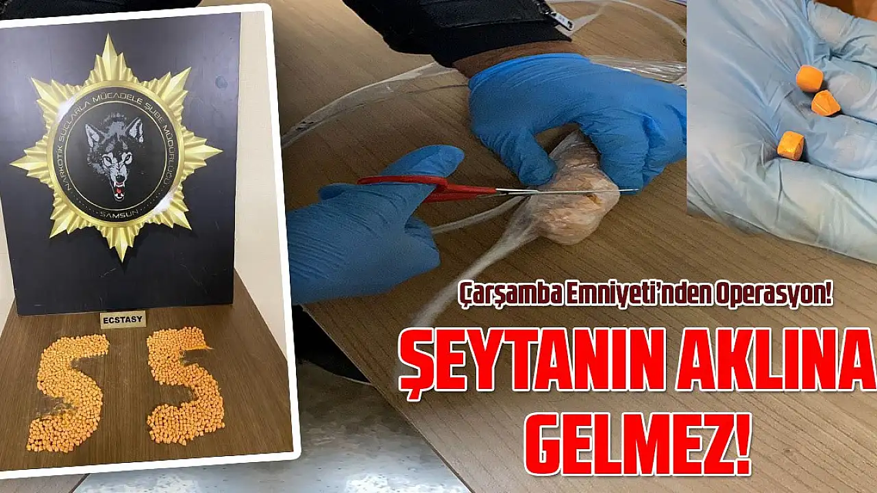 Takipteki iki şüphelinin havaalanında yapılan üst aramalarında, üst üste 2 iç çamaşırı giydikleri ve iç çamaşırlarının altına koli bandıyla toplamda 963 adet ecstasy hapı yapıştırdıkları tespit edildi. Uyuşturucu hapların bantlanmış halde piyasa değeri yaklaşık 300 bin ₺ olduğu değerlendirilirken, gözaltına alınan şüpheliler çıkarıldıkları Çarşamba Cumhuriyet Başsavcılığınca tutuklandıkları öğrenildi.