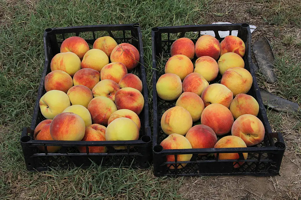 Samsun'un Çarşamba İlçesi Hacılıçay Mahallesi'nde şeftali üreticileri, sezonun son şeftalilerini topluyor.