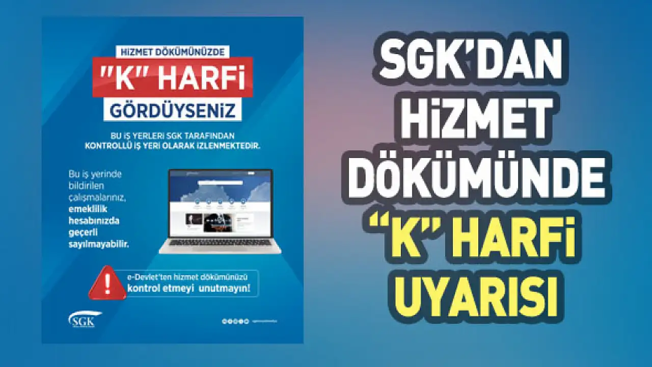 Sosyal Güvenlik Kurumu (SGK), vatandaşları hizmet dökümlerinde yer alan 'K' harfi konusunda uyardı.