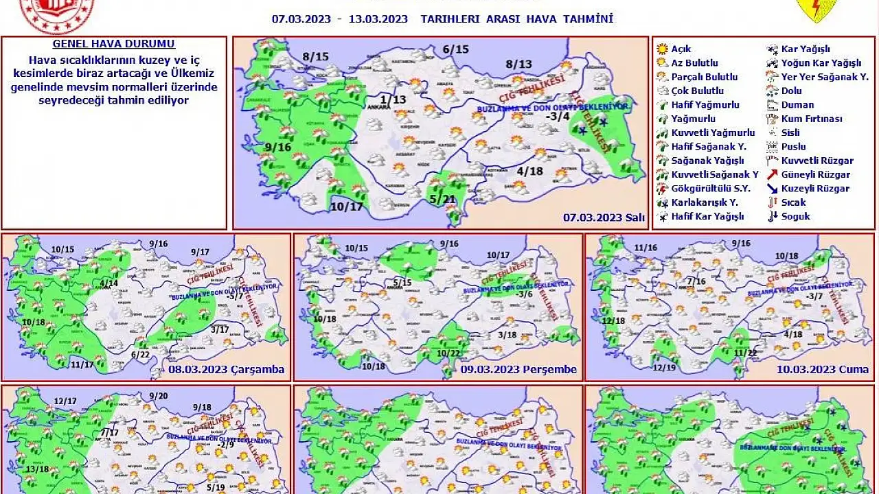 MGM resmi hesabından yaptığı haftalık hava tahmini açıklamasında, “Hava sıcaklıklarının kuzey ve iç kesimlerde biraz artacağı ve ülkemiz genelinde mevsim normalleri üzerinde seyredeceği tahmin ediliyor” ifadelerini kullandı.