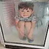 Adana'da dönerci ustası babasının yanında duran bir çocu,k sıcaktan bunalınca buzdolabında serinledi.