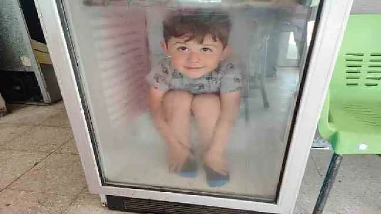 Sıcaktan bunalan çocuk buzdolabında serinledi