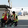 Sıcaktan bunalan işçiler uçakların altında serinledi