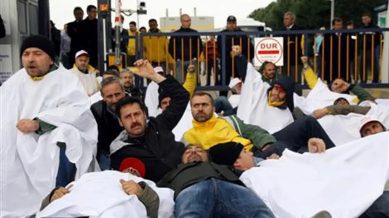 Eski çalışanların fabrika girişinde bekleyişleri sürüyor.