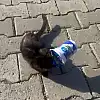 Bahçelievler Mahallesi'nde bir vatandaş, evinin önünde kafasını ayran kutusuna sıkıştırmış ve yürümekte zorlanan bir yavru kedi gördü. Duyarlı vatandaş, kedinin kafasını ayran kutusundan çıkararak yoluna devam etmesini sağladı.