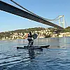 Tekirdağ'ın Süleymanpaşa ilçesinde yaşayan çılgın davulcu, sınırları zorlamaya devam ediyor. Denizin dibinde, havada paraşütle ve kayakla davul çalma performanslarıyla bilinen davulcu, şimdi de İstanbul Boğazı'nda deniz bisikleti üzerinde davul çaldı.