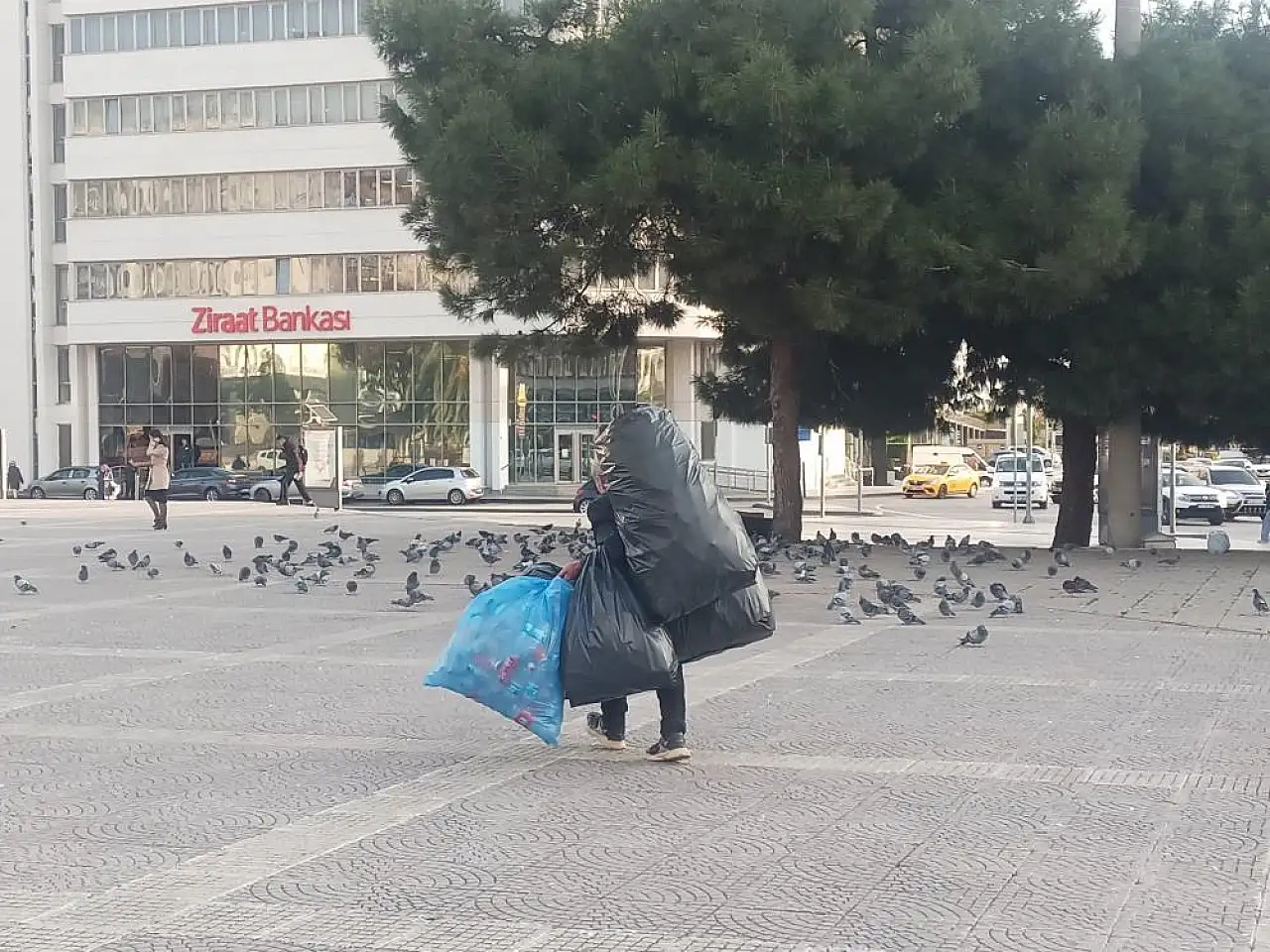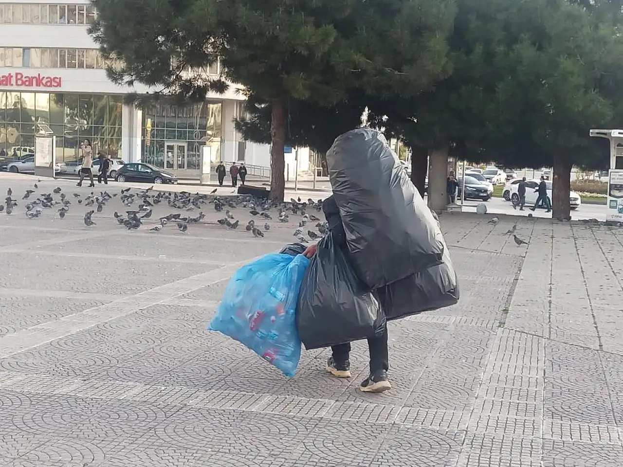 Şehrin işlek noktalarında zaman zaman karşılaşılan bu manzara, geri dönüşüm zincirinin görünmez emekçilerini hatırlatıyor. Kimi zaman soğukla, kimi zaman yorgunlukla mücadele eden bu insanlar, topladıkları her pet şişeyle hem geçimlerini sağlamaya çalışıyor hem de kentin temiz kalmasına katkı sunuyor.