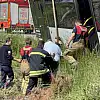 Çanakkale'de yoldan çıkan otobüste şoför mahsur kaldı