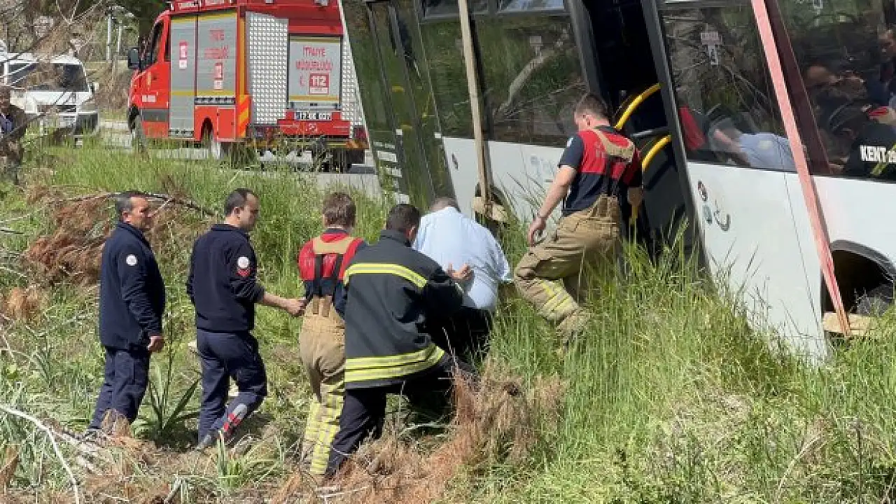 Çanakkale'de özel halk otobüsü yoldan çıktı. Şoför otobüste mahsur kaldı.