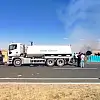 Şoför yan yatıp yanan tırdan atlayarak kurtuldu