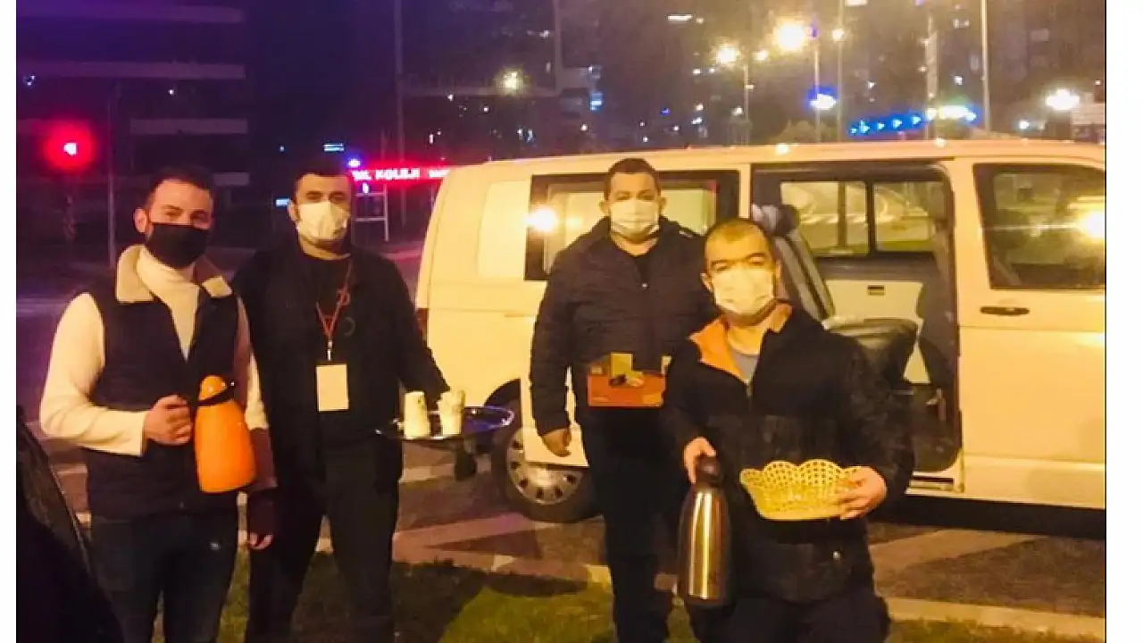 Samsun'da gönüllü şahıslar tarafından sokağa çıkma kısıtlamasında görev yapan emniyet güçlerine çay ve çorba ikram edildi.