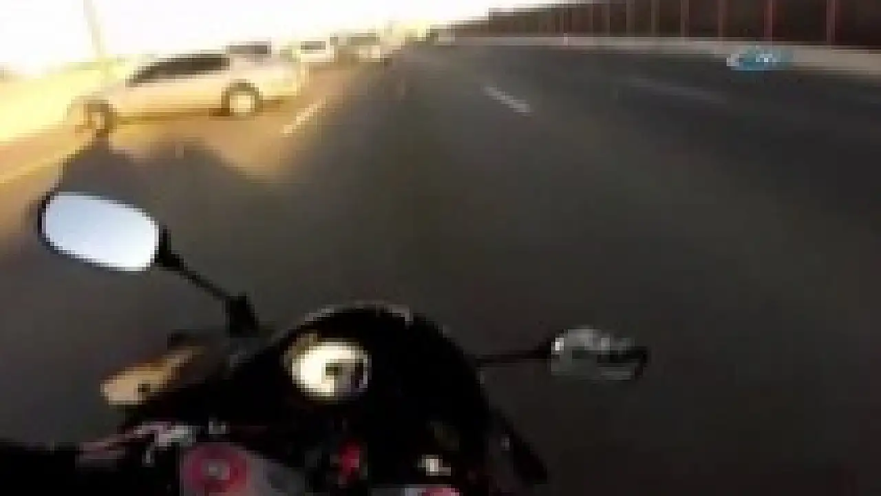 Görüntülerin adresi Amerika Birleşik Devletleri. Otoyolda seyreden motosikletlinin önünde zincirleme kaza meydana geldi. Birçok aracın birbirine girdiği olay anında soğukkanlılığını koruyan motosiklet sürücüsü, kazaya karışmaktan son anda kurtuldu. Kaza sonucu araçlar ciddi şekilde hasar gördü.