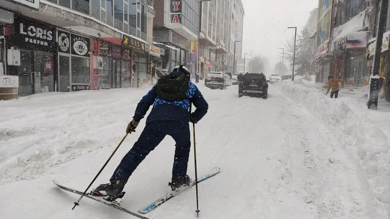 Yoğun kar yağışı Ardahanlılara büyük zorluklar yaşatırken bir yandan da vatandaşların kent merkezindeki kayak keyfi kameraya yansıdı.