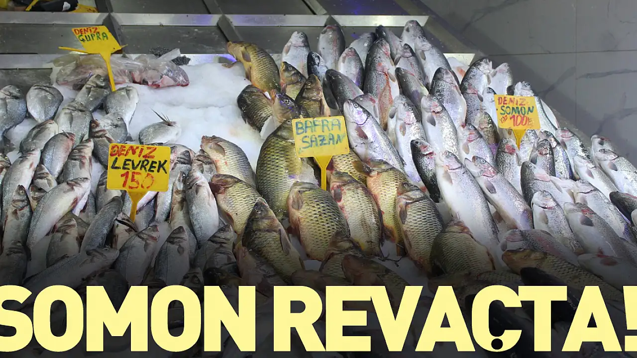 Şu anda tezgahta bulunan balık fiyatları şu şekilde: Somon 80 TL, alabalık 70 TL, levrek 150 TL, sazan 70 TL, yayın 100 TL.