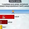 ORC’nin 4-7 Mayıs 2015 tarihleri arasında 36 ilde toplam 2 bin 450 kişi ile yaptığı seçim anketinde AK Parti yüzde 47.5, CHP yüzde 23.9, MHP yüzde 15, HDP ise yüzde 8.1 oy oranında çıktı. Katılımcıların yüzde 90.2’si de seçimden AK Parti’nin birinci çıkacağı yönünde görüş bildirdi.