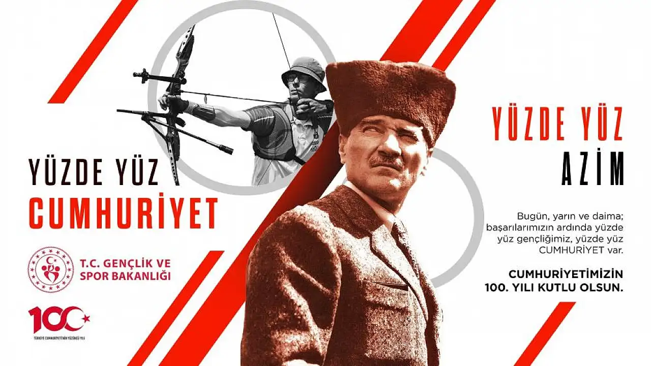 "Gençlikle, sporla, gururla. Nice yıllara. YÜZDE YÜZ CUMHURİYET!"