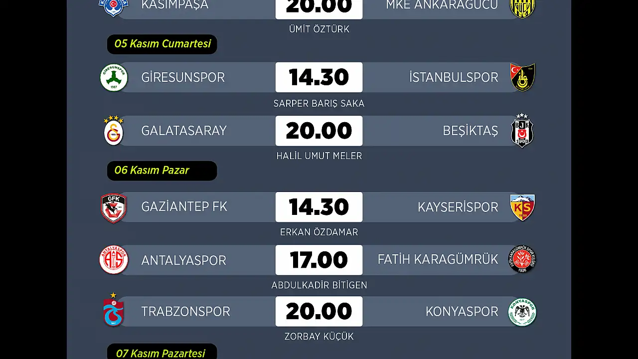 Türkiye Futbol Federasyonundan yapılan açıklamaya göre profesyonel liglerde haftanın programı şöyle: