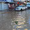Su altında kalan yolda kısa süreliğine trafikte aksamalar oldu.