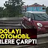 Sudan dolayı kayan otomobil bariyerlere çarptı
