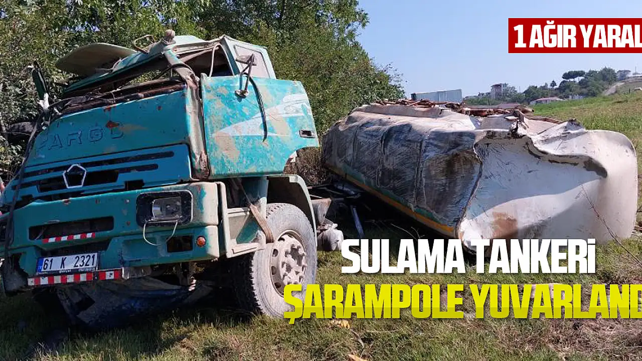 Sulama tankeri şarampole yuvarlandı: 1 ağır yaralı