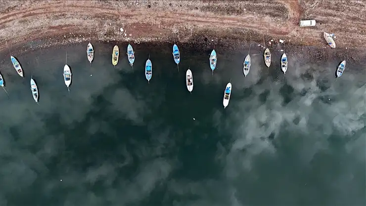 Suları çekilen Manisa'daki Demirköprü Barajı yosunla kaplandı